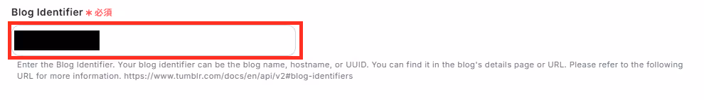 Blog Identifierには投稿したいアカウントのブログの識別子を入力します。