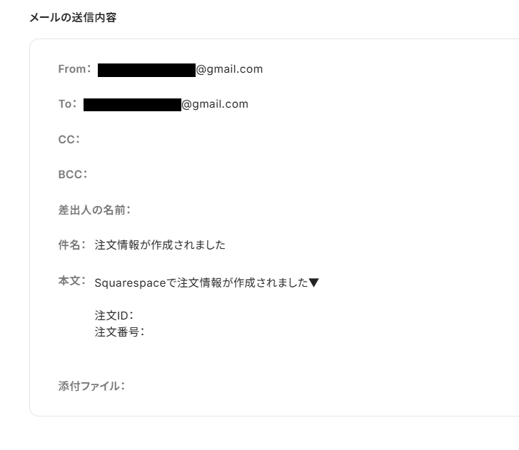 2.メール内容の各項目を設定していきます。
