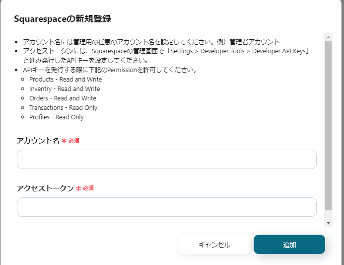 入力完了後、「追加」を押せばSquarespaceとYoomのマイアプリ連携は完了です!