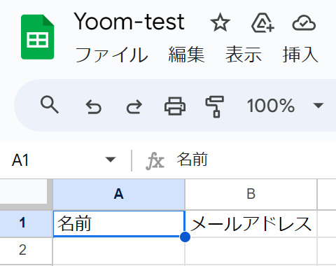 Google スプレッドシートに移動して、テスト用に注文者情報を設定してください。