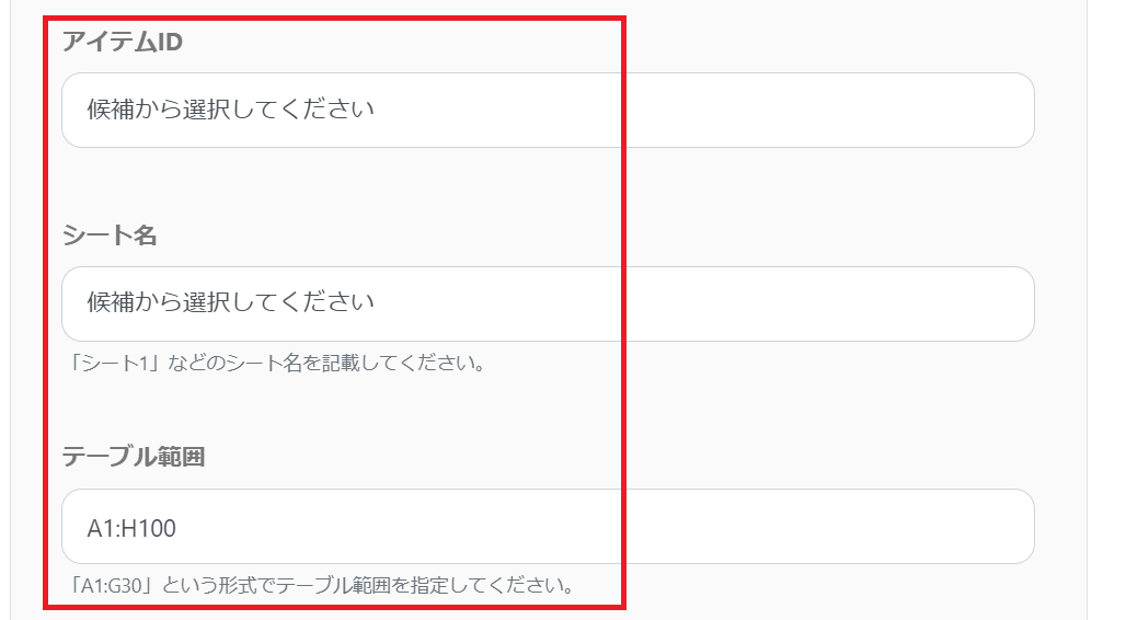 残りの項目も設定していきます。