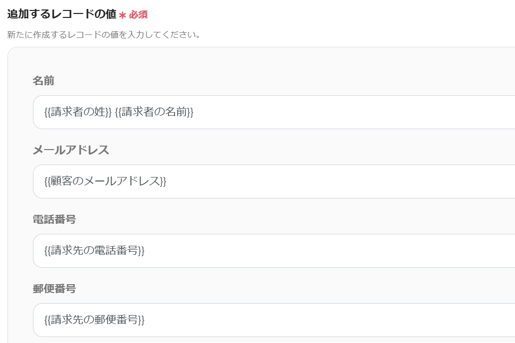 続いて「レコードを追加する」をクリック。