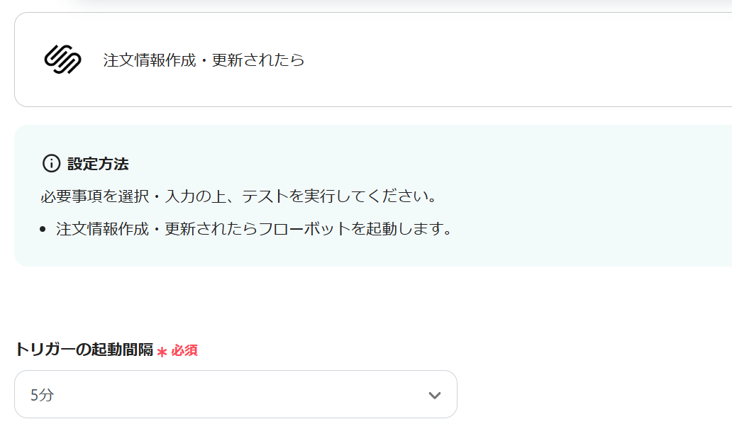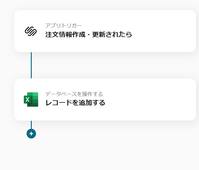 2.Squarespaceで注文情報が作成・更新されたらGoogle スプレッドシートに情報を追加するフローです。