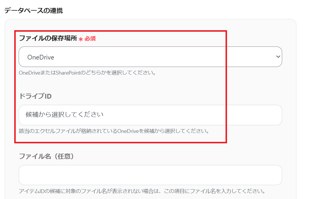 表示された項目の設定をお願いします。