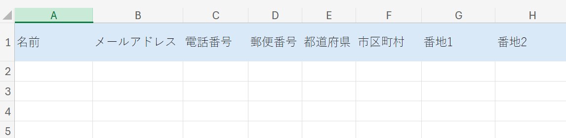 Squarespaceの注文者情報が記載できる、Microsoft Excelのシート。