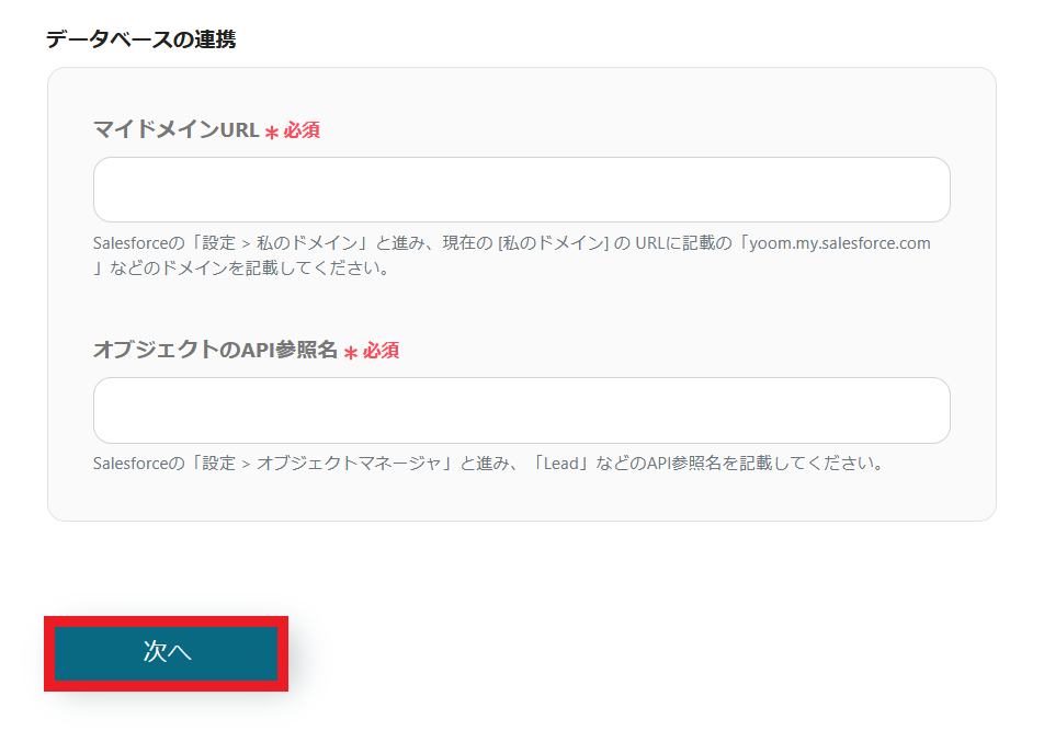 マイドメインURLとオブジェクトのAPI参照名を入力します。