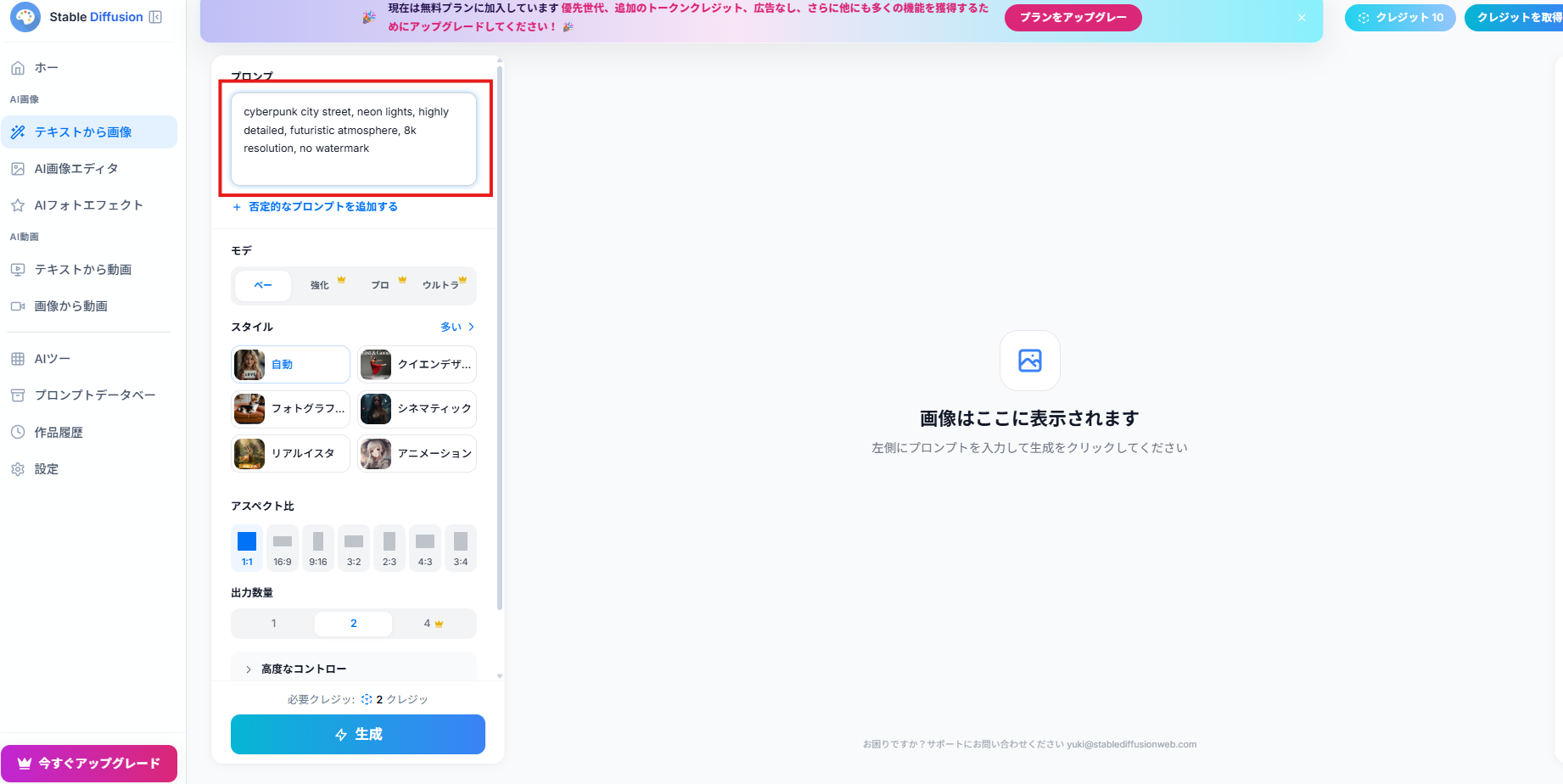 画像生成:Stable Diffusion XLモデル(SDXL)(オンライン版 無料)