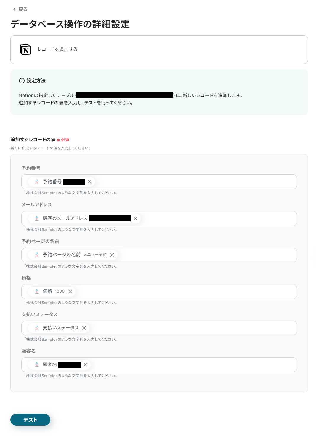 これにより、予約ごとに変わる情報を動的にNotionに追加できます。