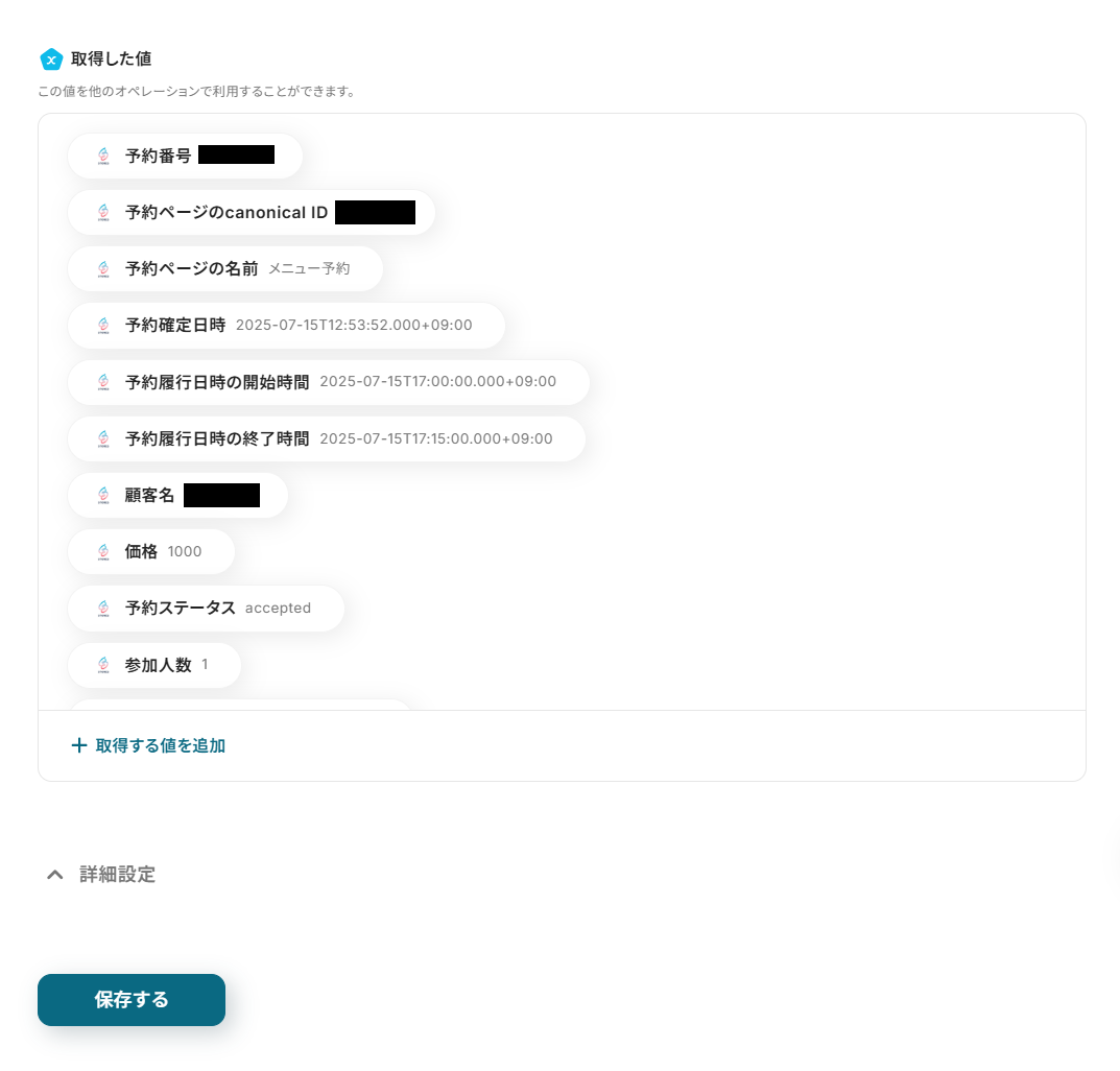 テストが成功したら、STORES予約の情報が取得されるので保存してください。