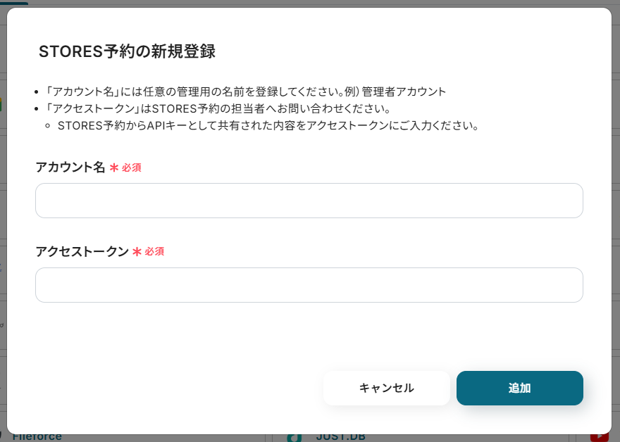 アカウント名とアクセストークンを入力し、「追加」をクリックすると連携が完了です。