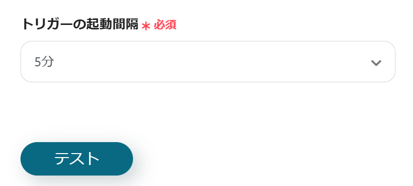 以下の画面が表示されたら、「トリガーの起動間隔」を設定しましょう。