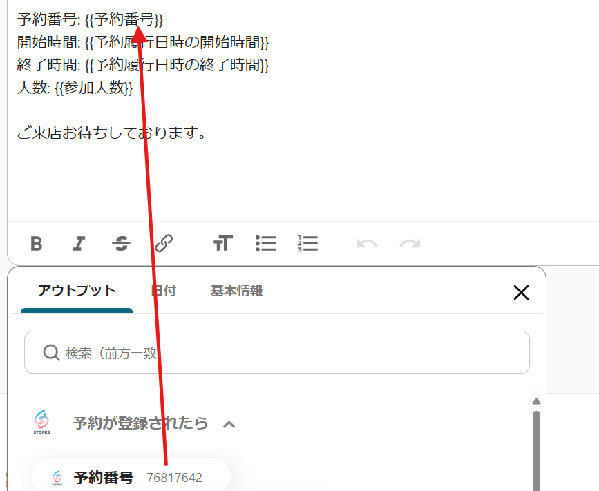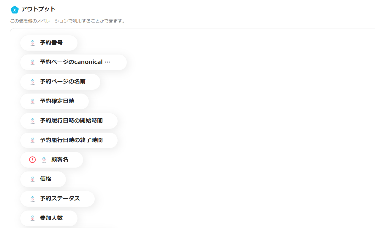 テストし、予約詳細がアウトプットに取得できたら保存します。