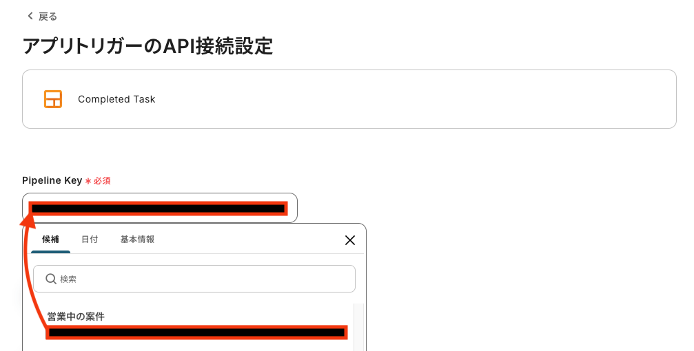 入力欄をクリックすると候補が表示されるので、対象のPipeline Keyを選択しましょう。