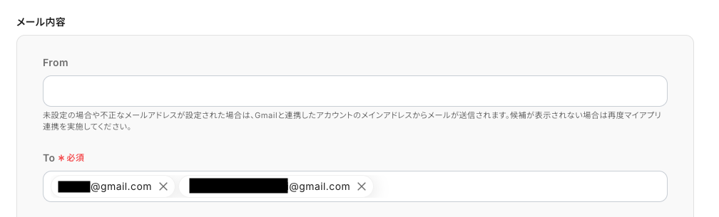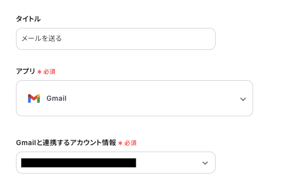 アプリ、Gmailと連携するアカウント情報はあらかじめ設定されているため、そのまま内容を確認してください。