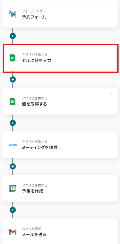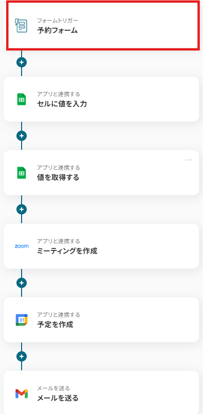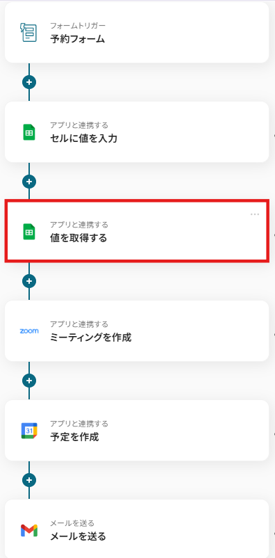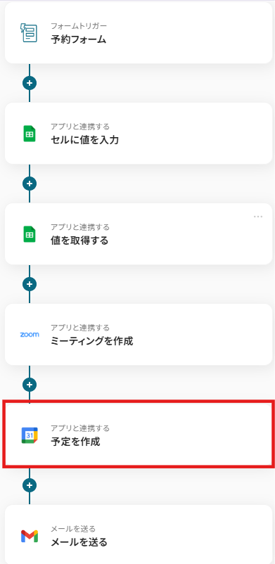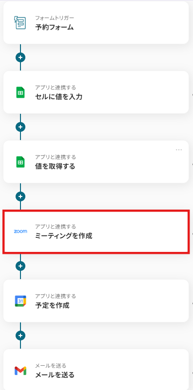 Googleフォームの情報をGoogleカレンダーに追加してzoomのミーティングを作成するフローです。