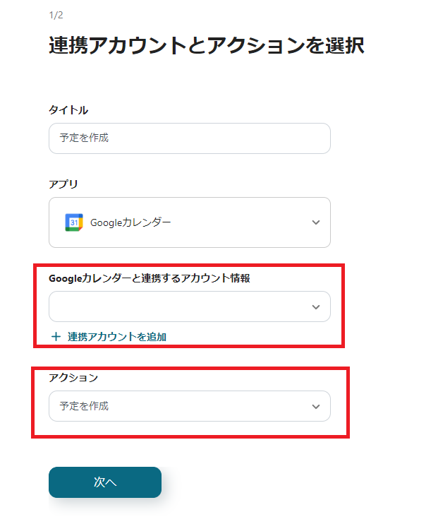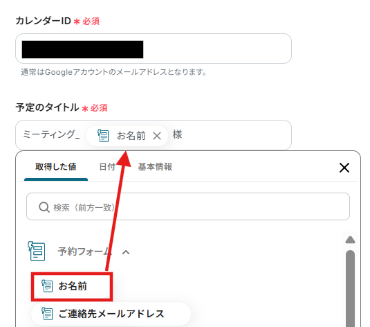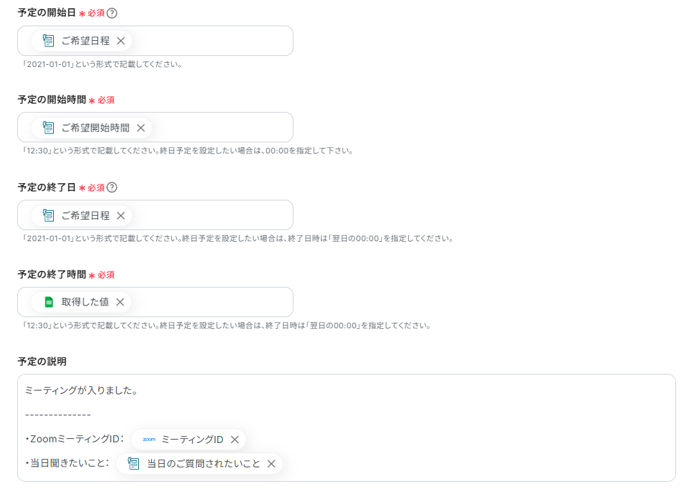 5.Googleカレンダーの「予定を作成」というオペレーション内で、カレンダーに追加する予定の設定を変更してください。