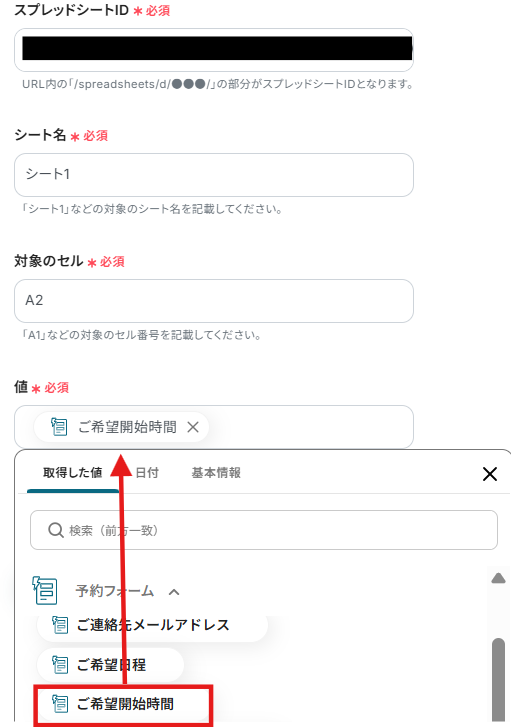 ※取得した値の埋め込みについてはこちらをご参照ください。