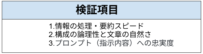 人間が同様の作業を行う場合、資料の読み込みから骨子の作成までに数時間を要することを考慮すると、圧倒的な時間短縮が実現されています。