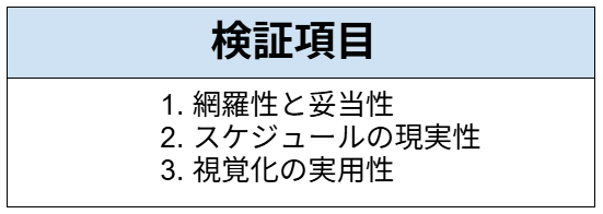 実務の初期段階において、AIがどれだけ精度の高いプロジェクト計画を立案できるかを検証し、実際の業務フローに組み込めるレベルのアウトプットが得られるかどうか、その実用性を測ります。