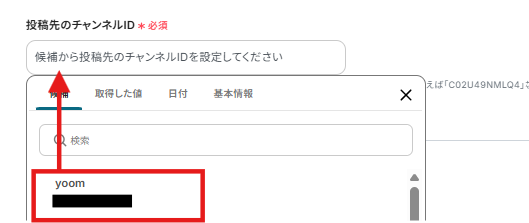 投稿先のチャンネルIDは以下のように表示される候補から選択しましょう。