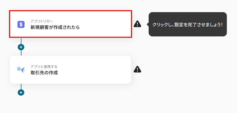 先ほどの画面で「OK」をクリックして、表示された画面のアプリトリガー「新規顧客が作成されたら」をクリックしましょう。