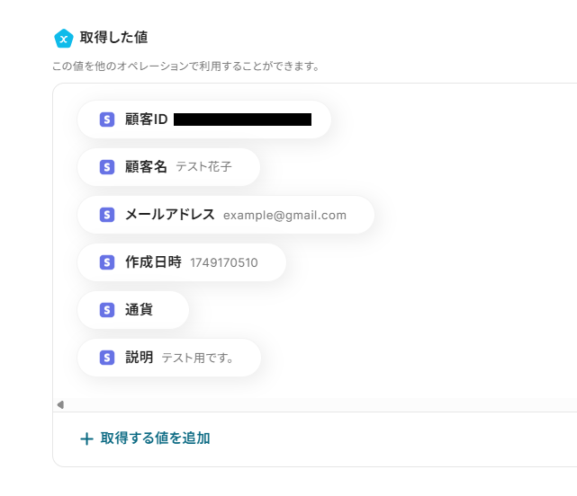 取得した値は、後続の設定で活用できます!