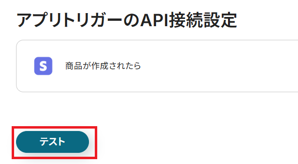 Yoomのフローボットを動かす引き金となるアクションのことを「アプリトリガー」と呼びます。 このフローボットでトリガーになっている、Stripeの「商品が作成されたら」というアクションを設定していきましょう。