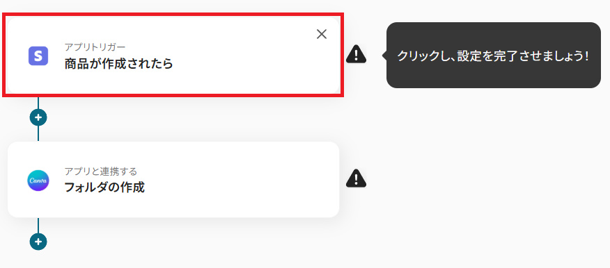 今回はStripeで商品が作成されたら、Canvaにフォルダを作成するフローを作成していきます! 作成の流れは大きく分けて以下です。