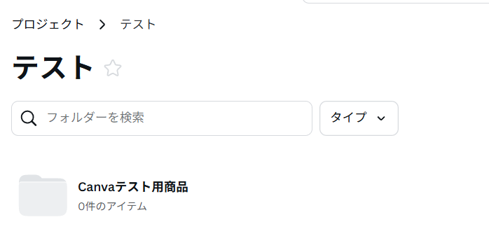 実際にCanvaにログインしてみると、今回例として指定したテスト用フォルダの中に、Stripeの商品名を反映したフォルダが作成されています。