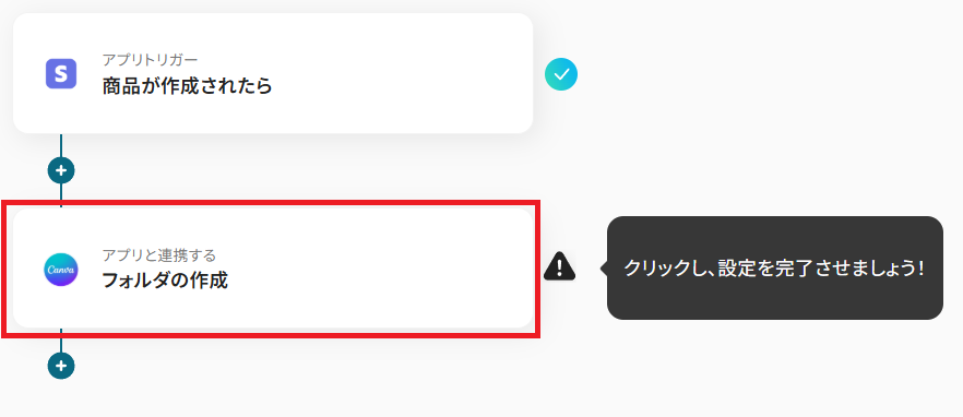 Stripeで新しく商品が作成されたことをYoomで検知したら、その情報を使ってCanvaにフォルダを自動作成するアクションを設定していきましょう。