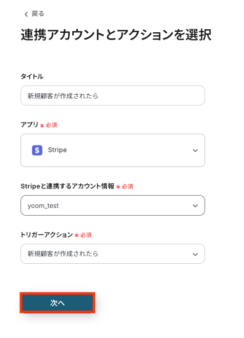 このトリガーは、Stripe上で新規顧客が作成されたタイミングを検知して、自動処理を開始するための設定です。