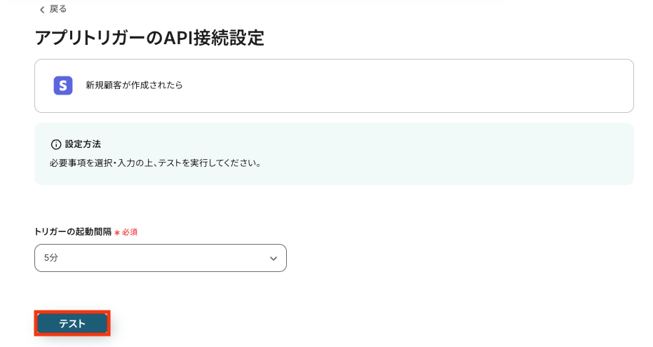 設定内容とトリガーの動作を確認するため、「テスト」をクリックします。
