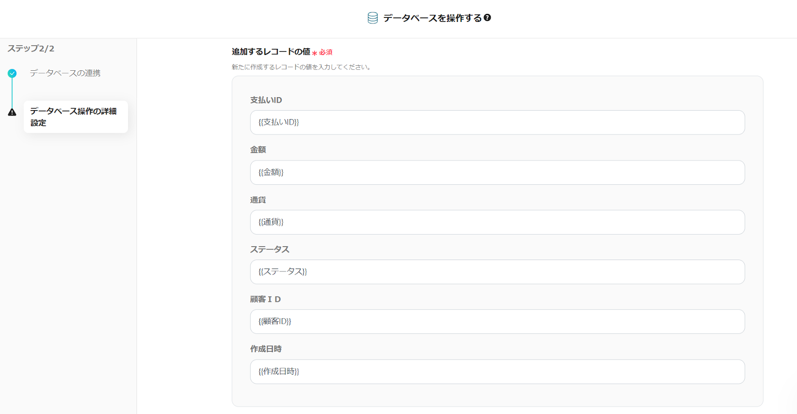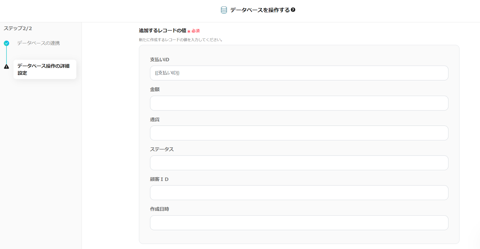 画像の場合、ボックスの項目名が「支払いID」のため、Stripeのデータからは同じく「支払いID」を選びました。