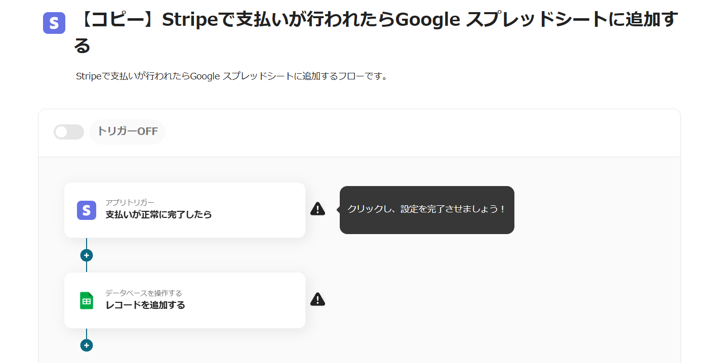 「【コピー】Stripeで支払いが行われたらGoogle スプレッドシートに追加する」をクリックします。