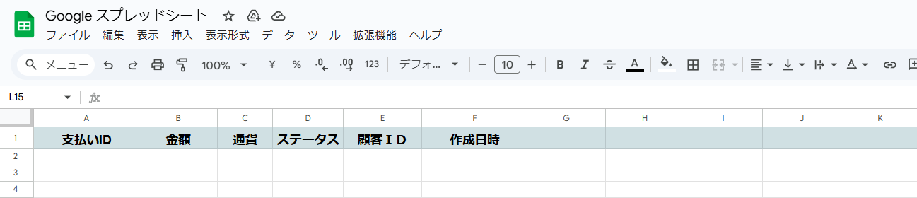 Stripeの支払いデータを転記するGoogle スプレッドシートを用意しましょう。