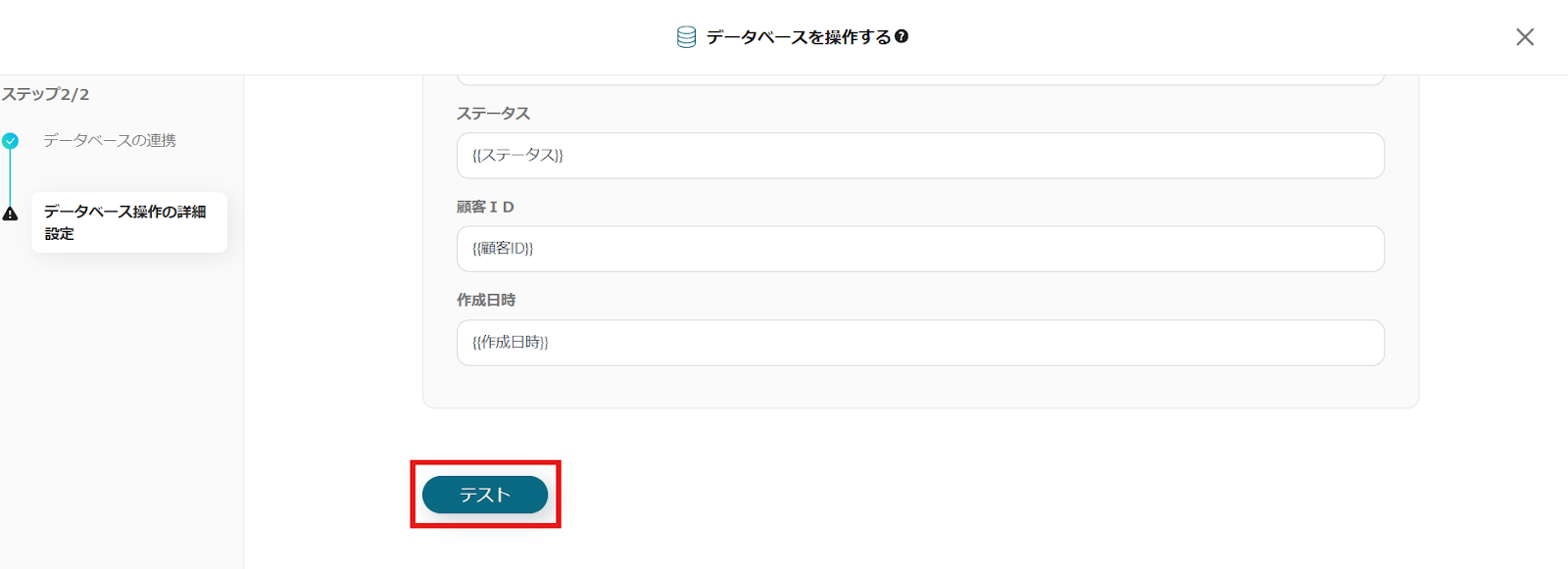 テストボタンを押し、青く「テスト成功」と表示がされたら次へ進みましょう。