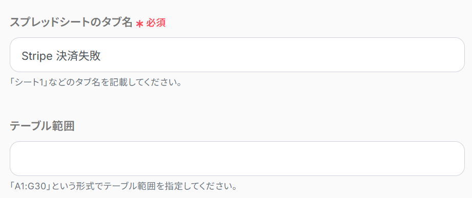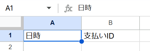 Google スプレッドシートの画面に移動し、Stripeで決済が失敗したデータの項目名をテスト用に設定します。