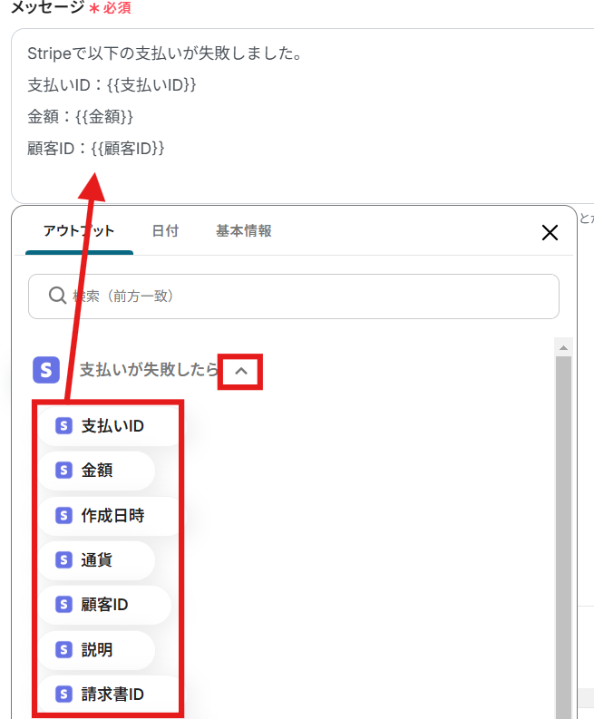 Stripeのアウトプットを活用し、設定を行いましょう。