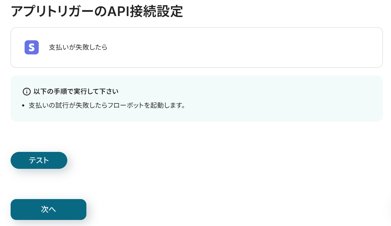 ・Stripeはチームプラン・サクセスプランでのみご利用いただけるアプリとなっております。フリープラン・ミニプランの場合は設定しているフローボットのオペレーションやデータコネクトはエラーとなりますので、ご注意ください。