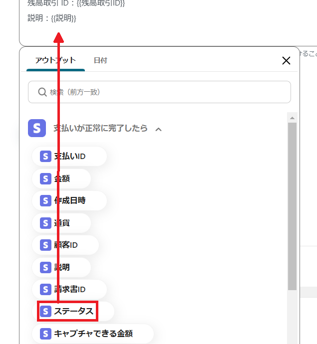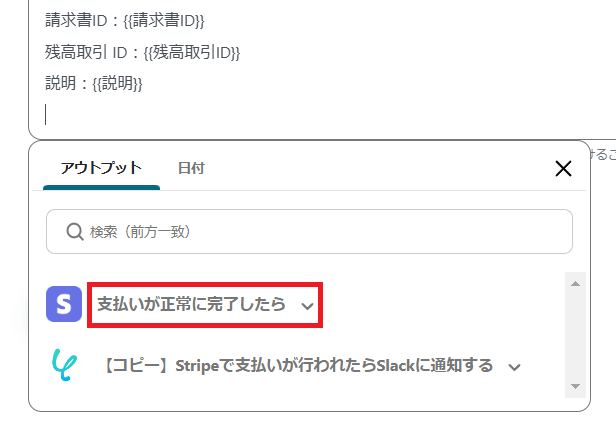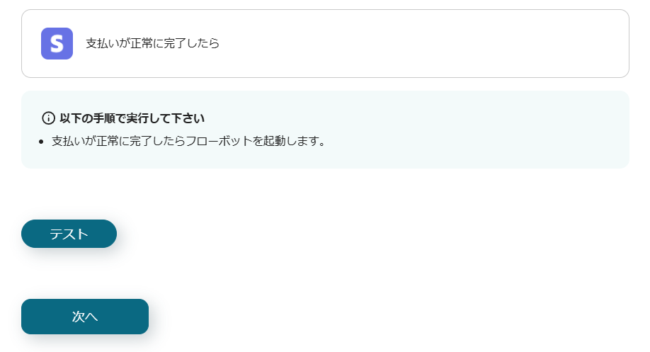 Stripeのアイコンの「支払いが正常に完了したら」を選択します。