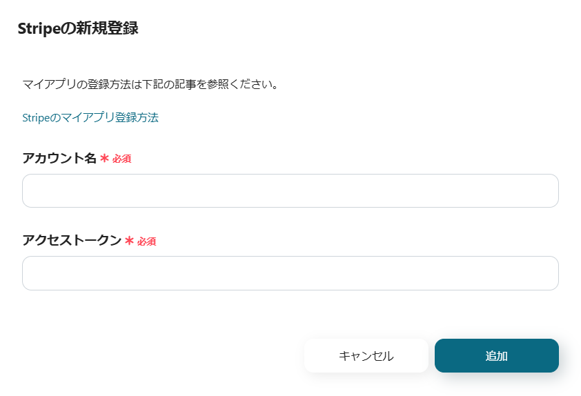 アクセストークンに関して、詳しくはStripeのマイアプリ登録方法をご確認ください。
