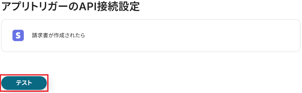 まずはYoomとStripeが連携できているか確認を行います。「テスト」をクリックしてください。