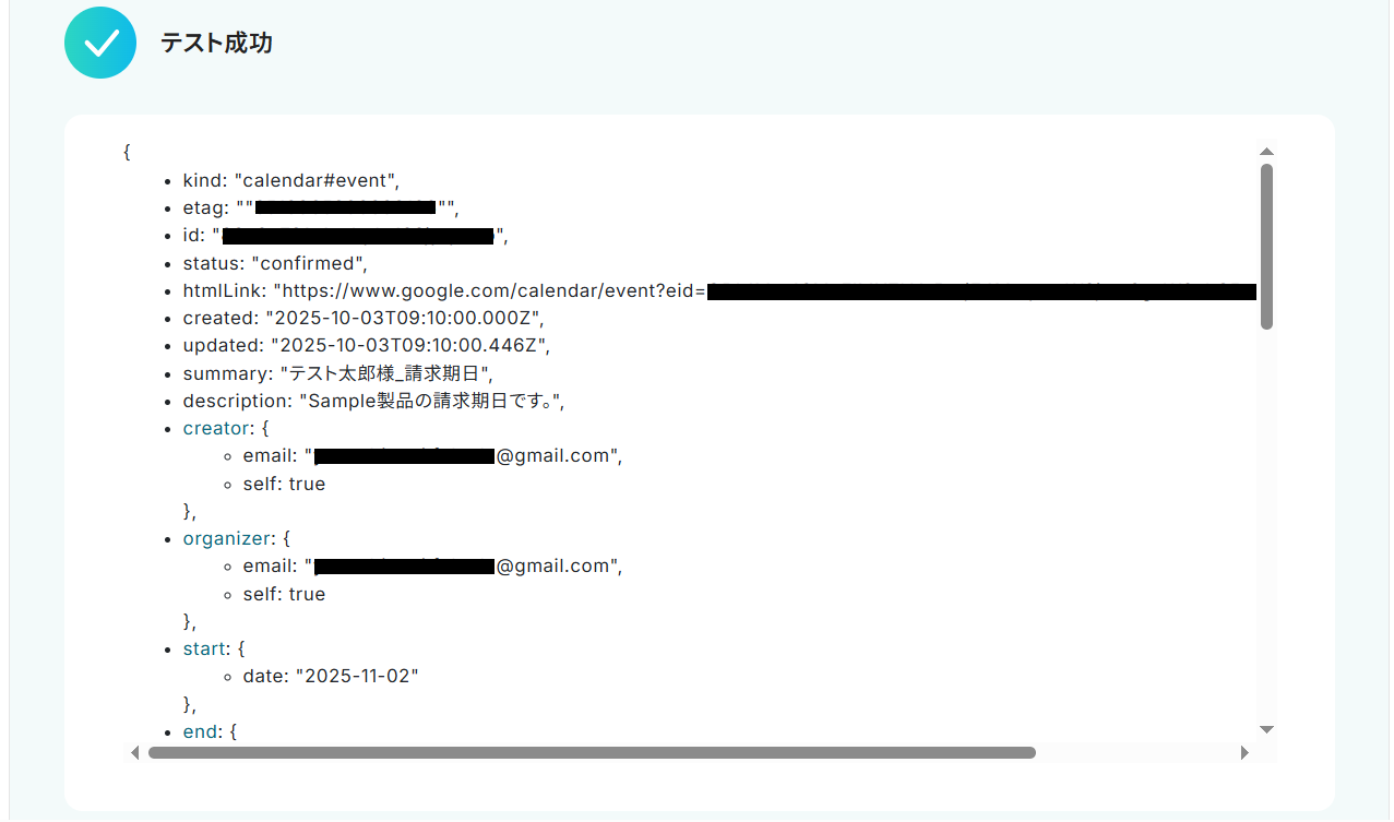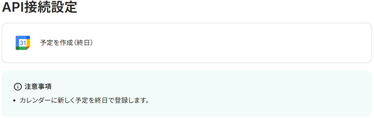 なお、Googleカレンダーに連携したいデータが取得した値に表示されていない場合、手動で追加する必要があります。