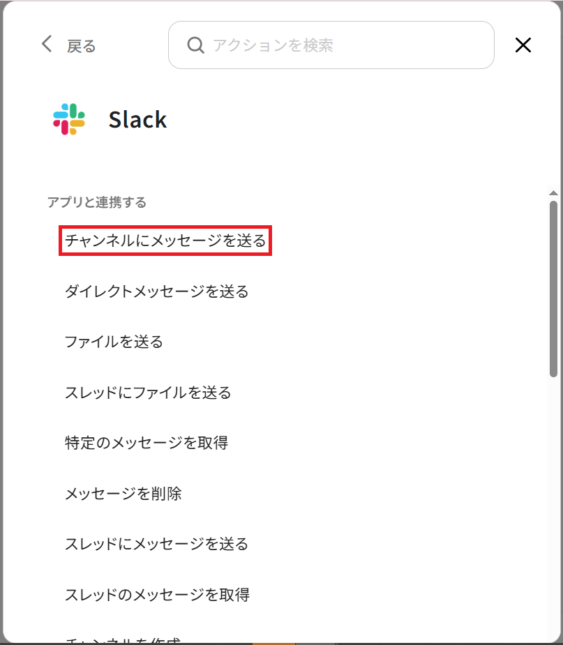 A:可能です。Googleカレンダーのアクション設定の下に、Slackの「チャンネルにメッセージを送る」などのアクションを追加してください。