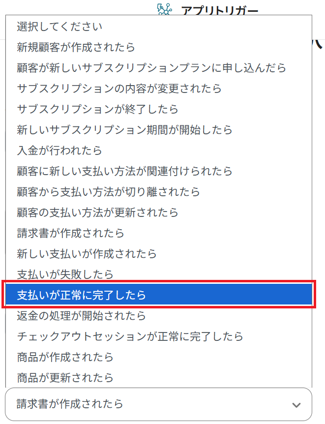 A:可能です。連携アカウントとアクションを選択する画面で、Stripeのトリガーを「支払いが正常に完了したら」に変更してください。