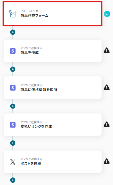 - フォームトリガーの設定とStripe・X(Twitter)のオペレーション設定