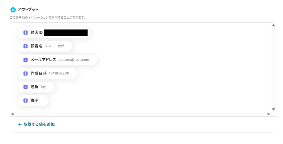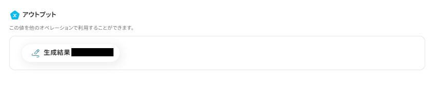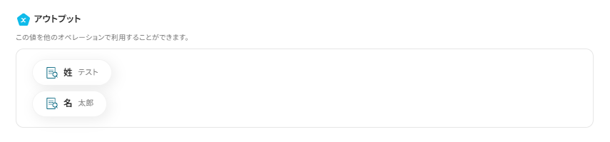 ※表示されているアウトプットは「この値を他のオペレーションで利用することができます。」と表記があるように、次の設定でも活用できます。
