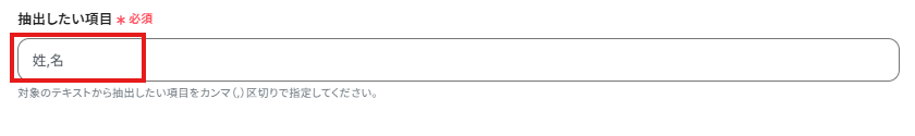 「抽出したい項目」は、テンプレートで抽出できる項目以外で抽出したい項目を入力します。
