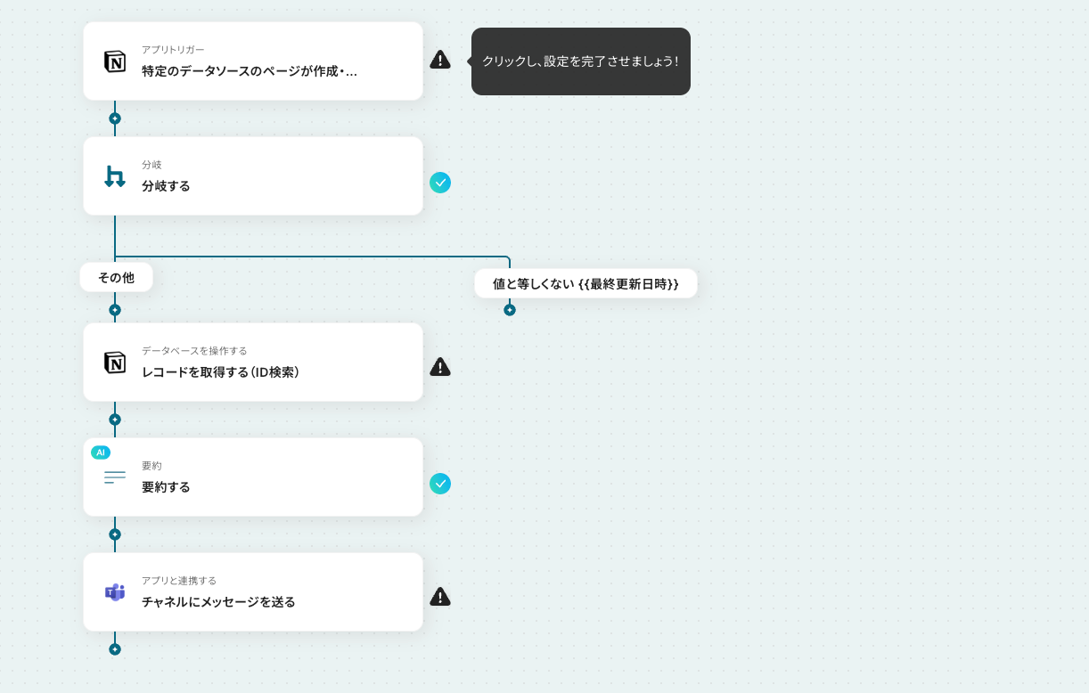 これにより、Notionに議事録が追加されると、要約結果が自動で入力されるようになります!