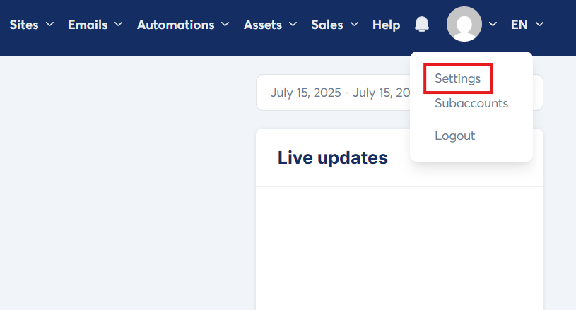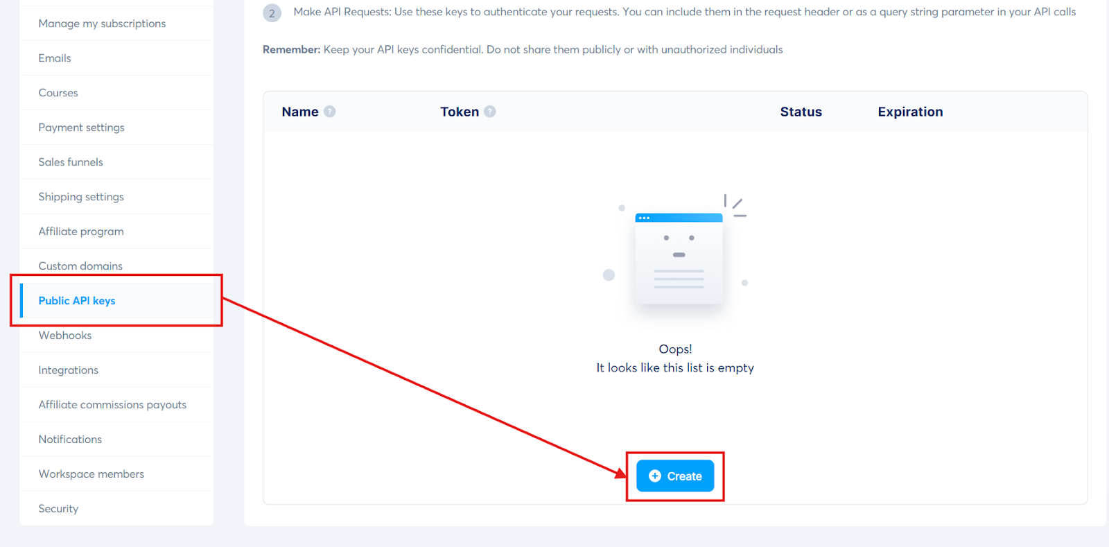 - Systeme.ioにログインし、連携に使用する「API Key」を取得しましょう。
